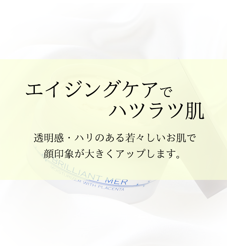 年齢が気になり始めてから色々な化粧品を渡り歩いて来ましたが、1番自分が求めていたものを実感できています。特に、若い頃に比べてどんよりした顔だったのが、徐々に明るい印象になったのには感激しました。これからも良い商品をお届けください。
