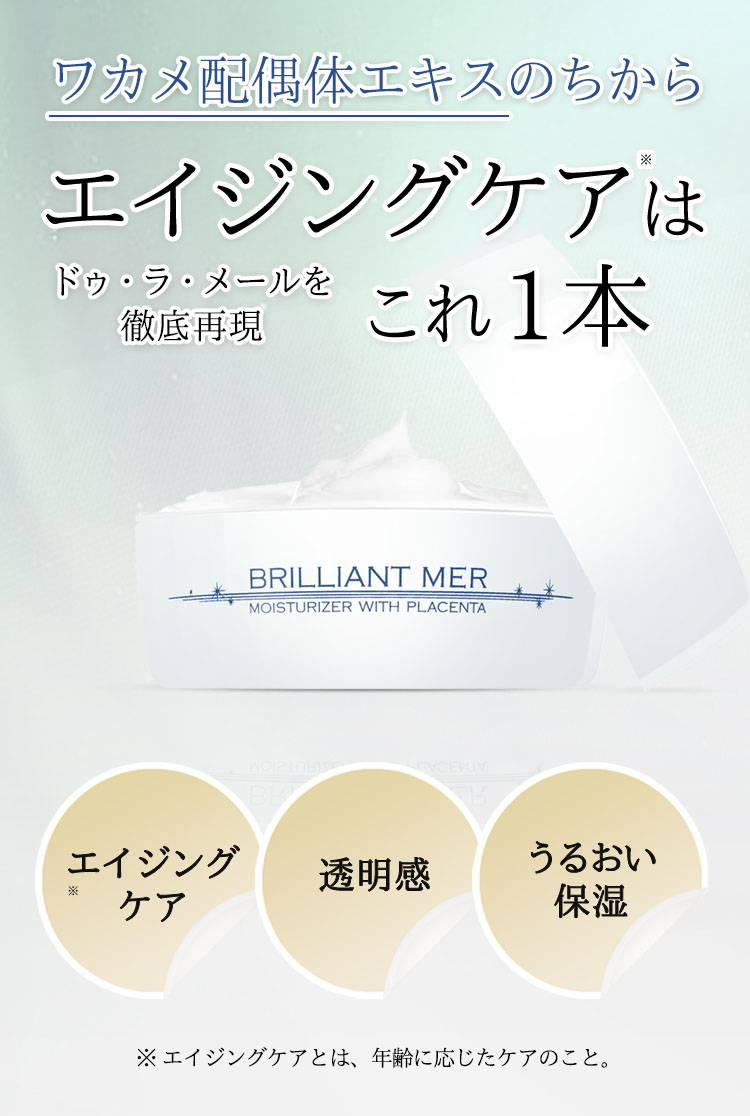 生まれたばかりのワカメの細胞(=配偶体)から抽出したエキスが、年齢を感じさせないハツラツとした肌を生み出します。