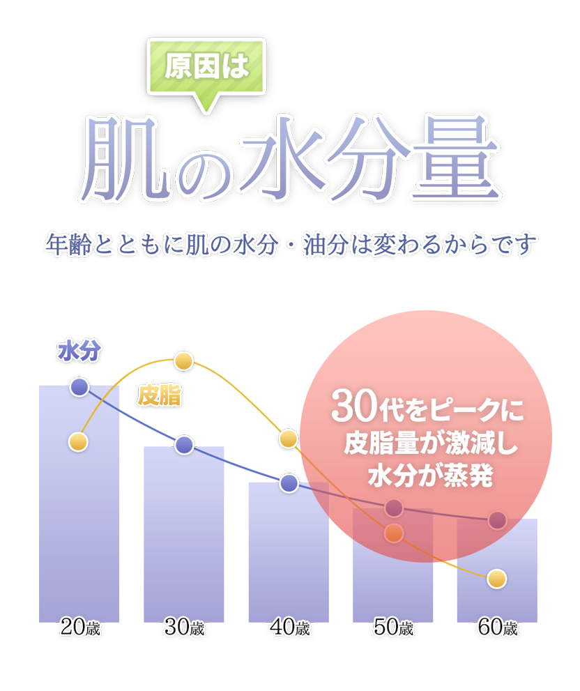 中くらいの分子は、うるおいのある弾む肌をキープします。