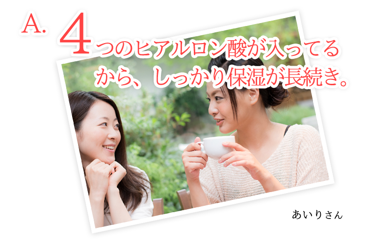 4つのヒアルロン酸が入ってて、もちもち肌が長続きするから